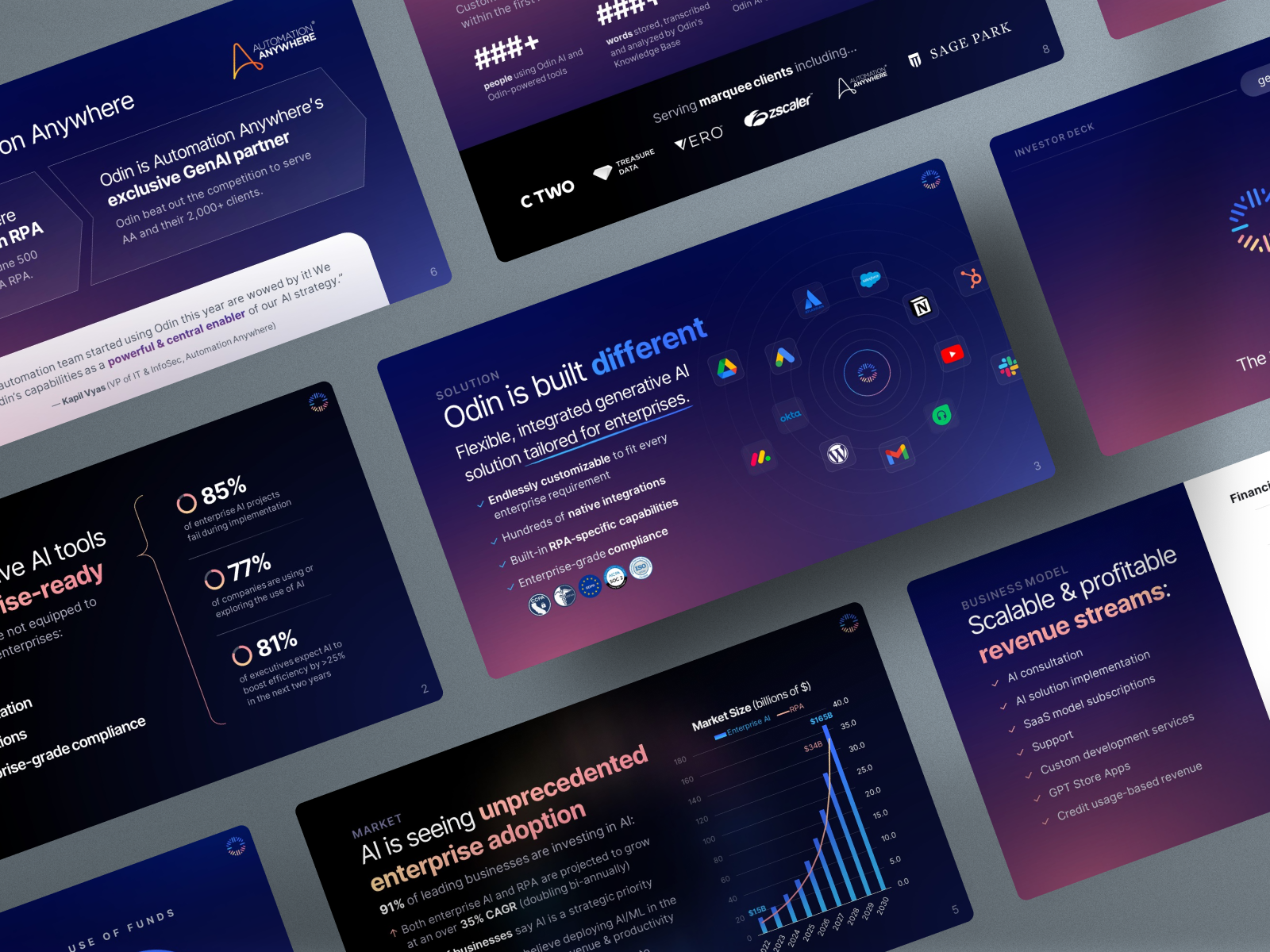 Here's a preview of the investor pitch deck designed by Vip Sitaraman for Odin AI:
