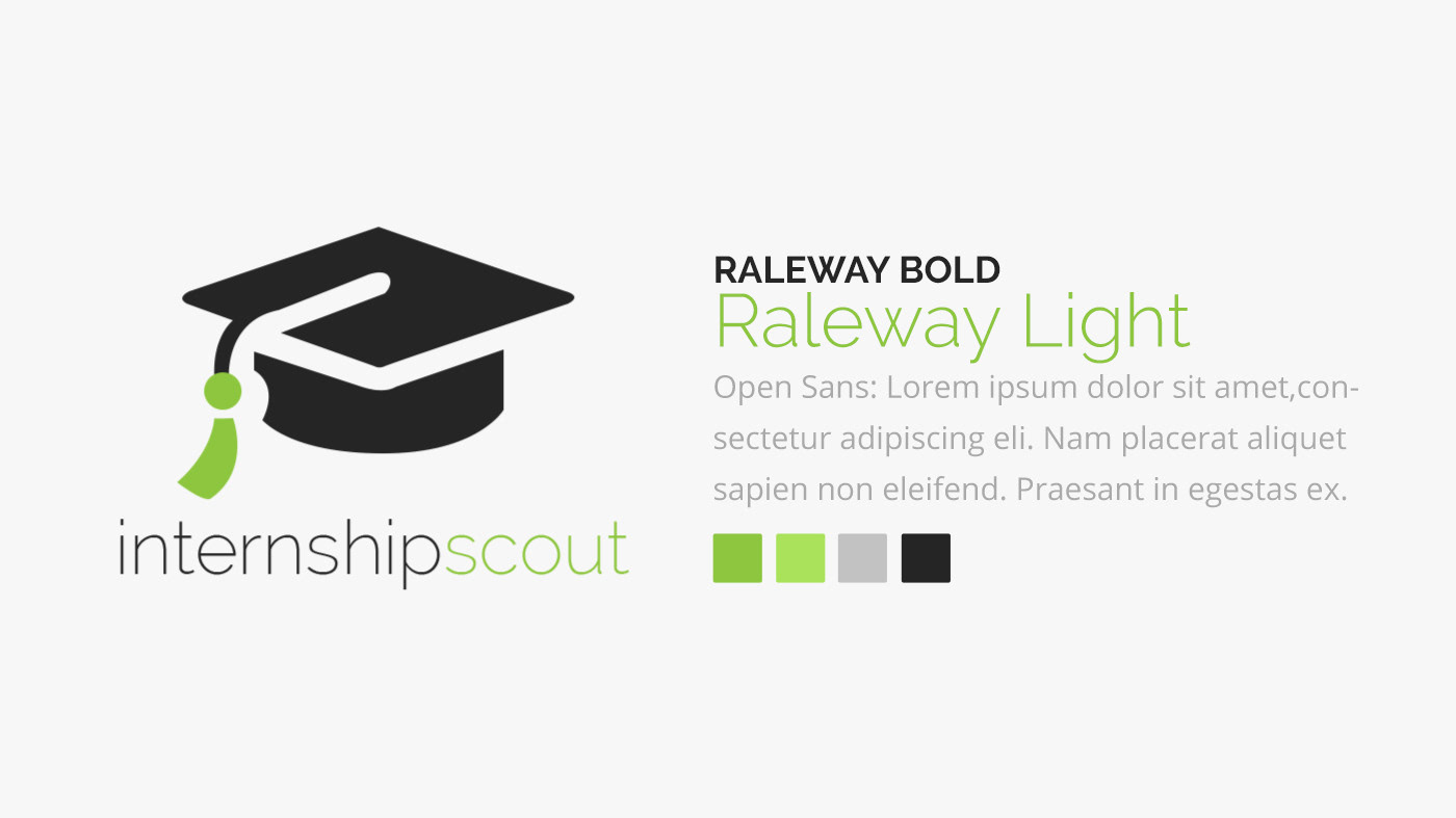 As Lead Designer at Internship Scout, I've built the design standards for this startup since the beginning. A playful letter 'i' in the logo is juxtaposed with sleek sans-serif fonts. Website: internshipscout.co
