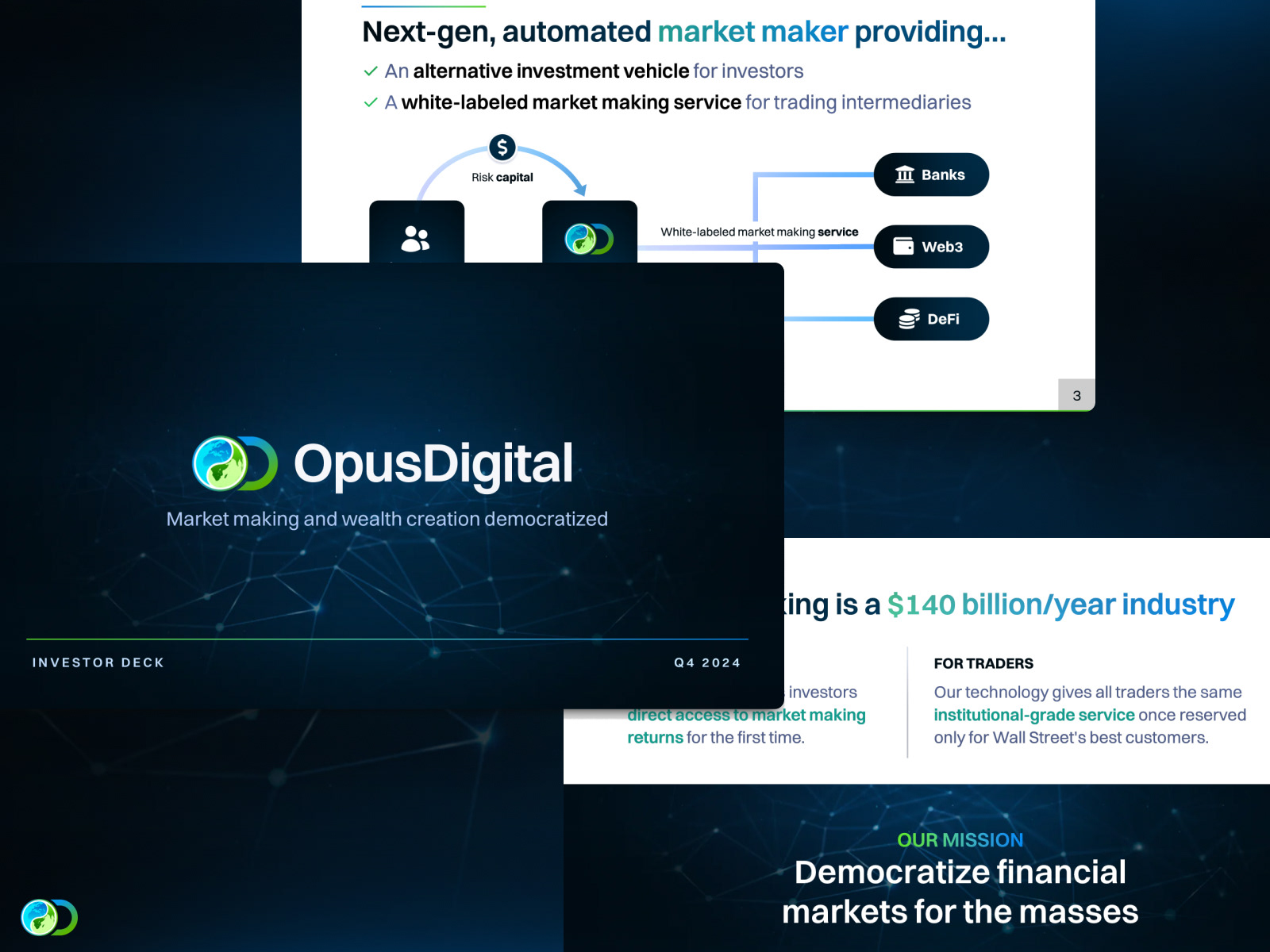 OpusDigital is building an automated, next-gen market maker to democratize wealth creation with a hybrid model combining the best of TradFi and DeFi. Their platform allows anyone to benefit from the institutional quality pricing and risk management tools that Wall Street has been using for decades.