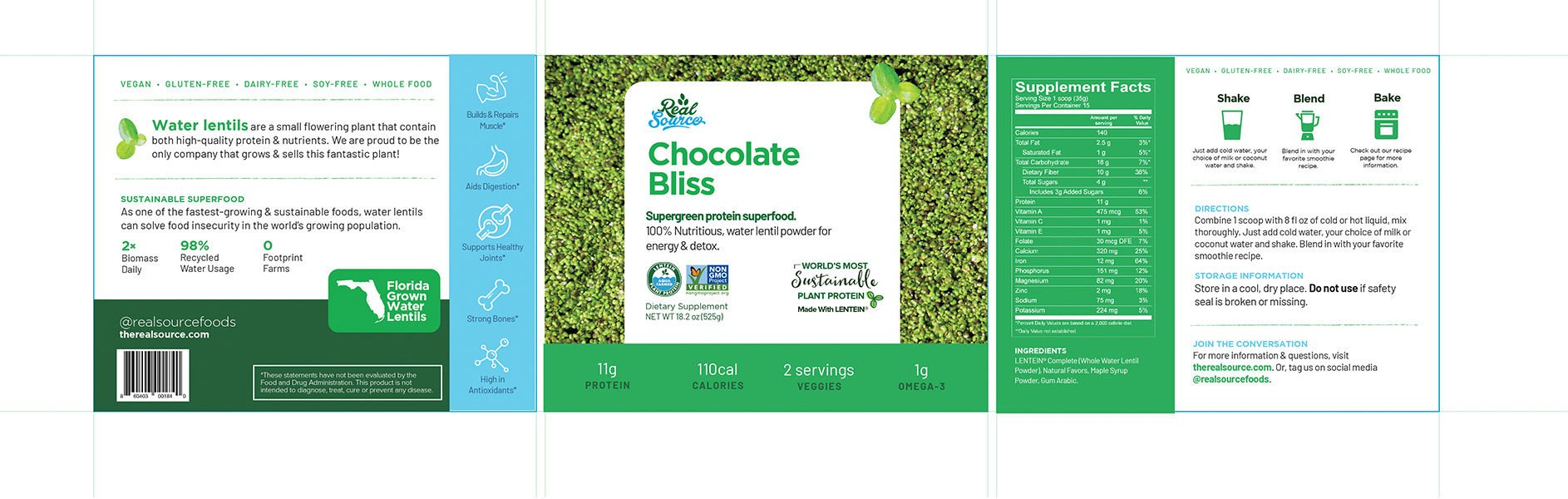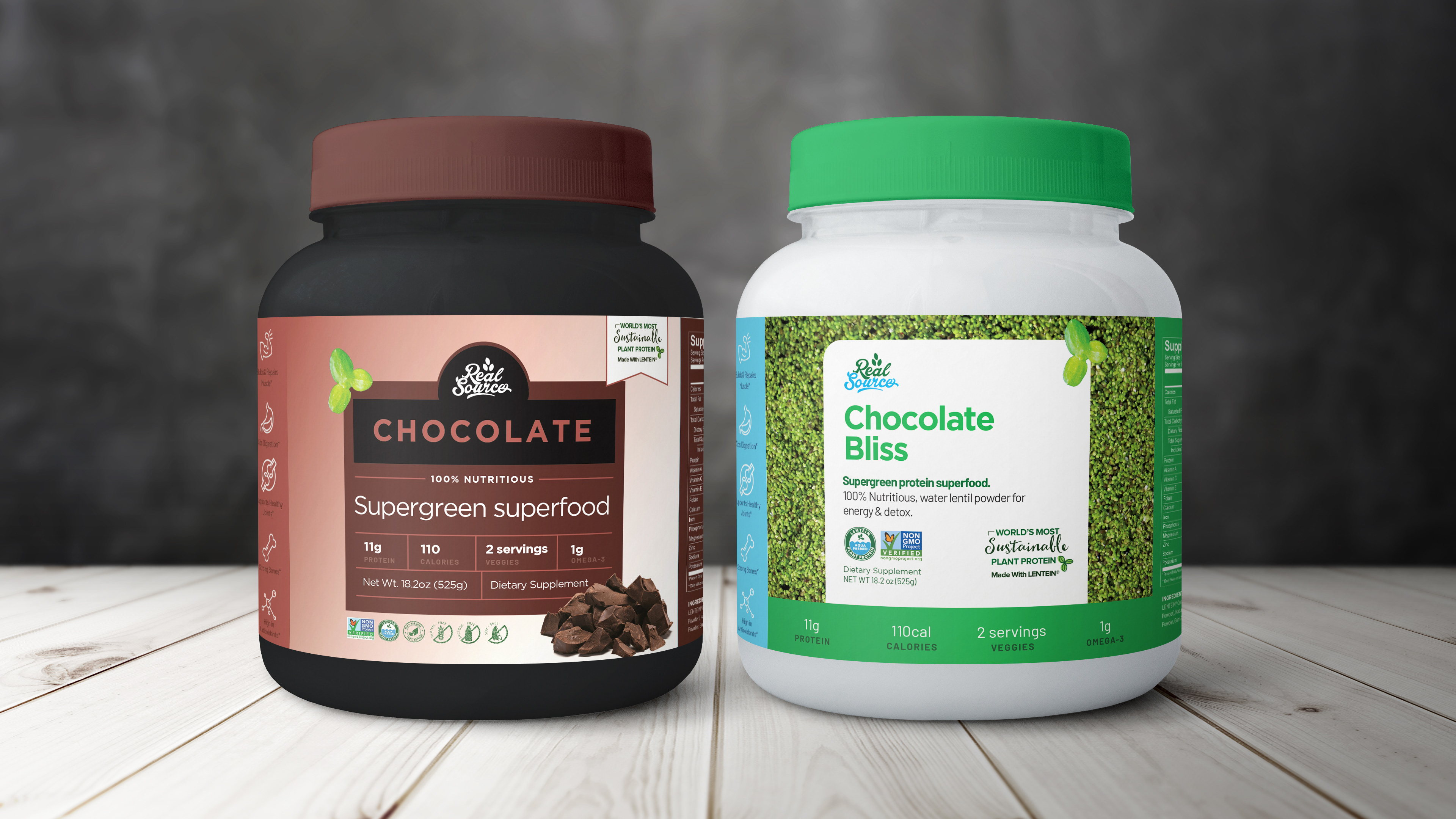 A couple packaging designs for a sustainable protein powder product (rejected by Client).