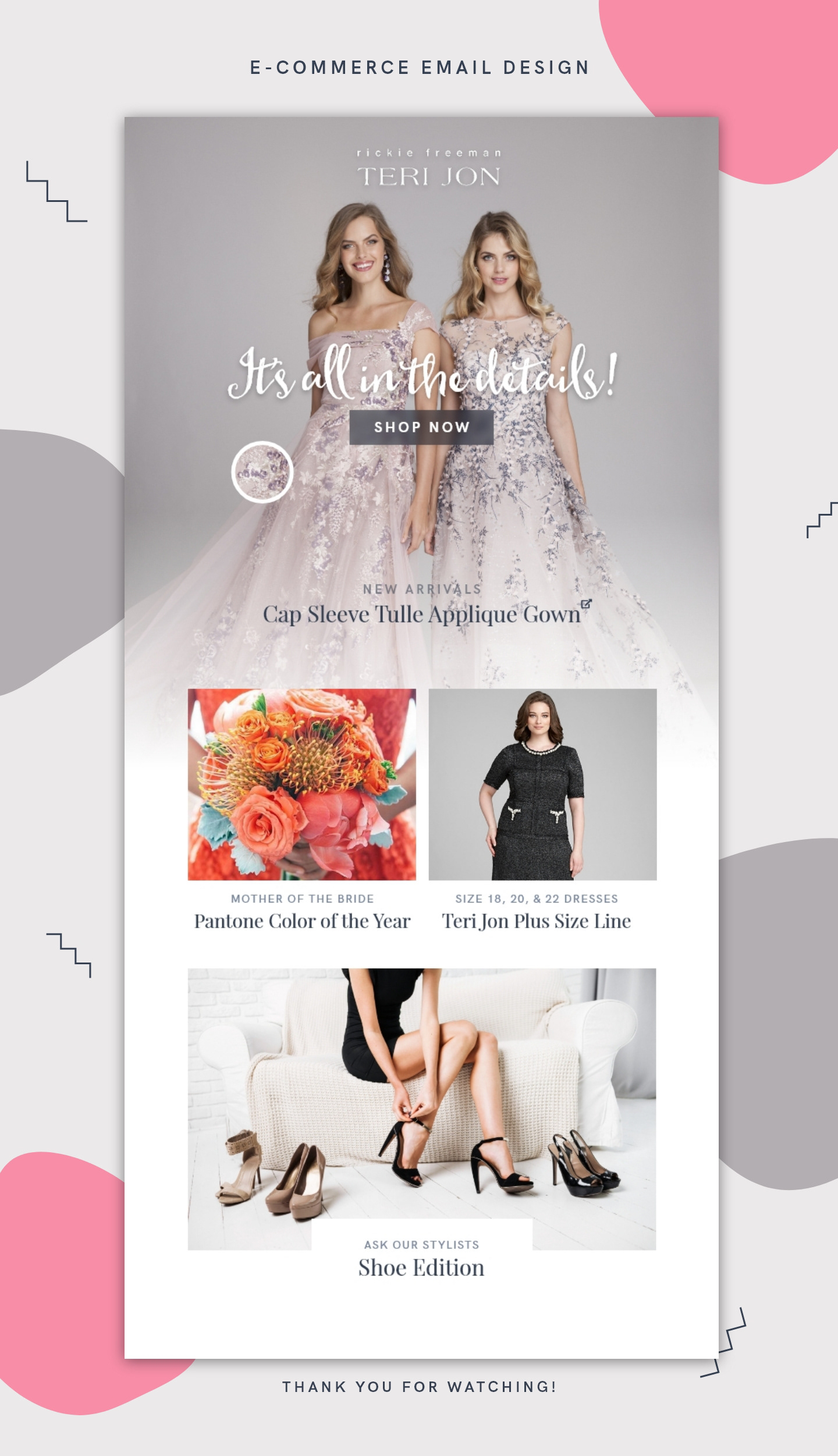 E-commerce email design for new product release from dress & gown retailer, Teri Jon.