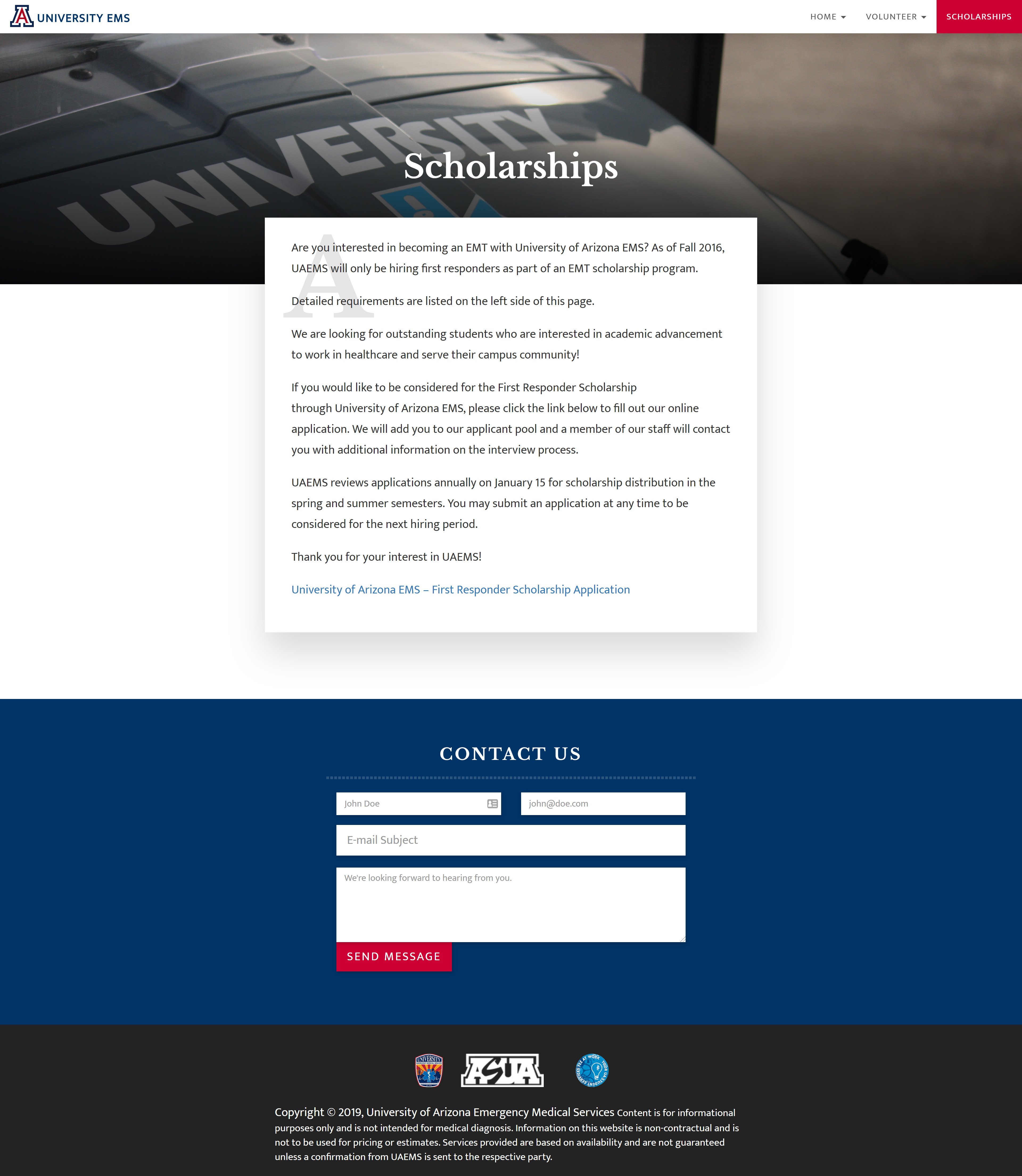 Designed brand/identity & developed website with custom WordPress theme for Emergency Medical Services (UEMS) at University of Arizona.