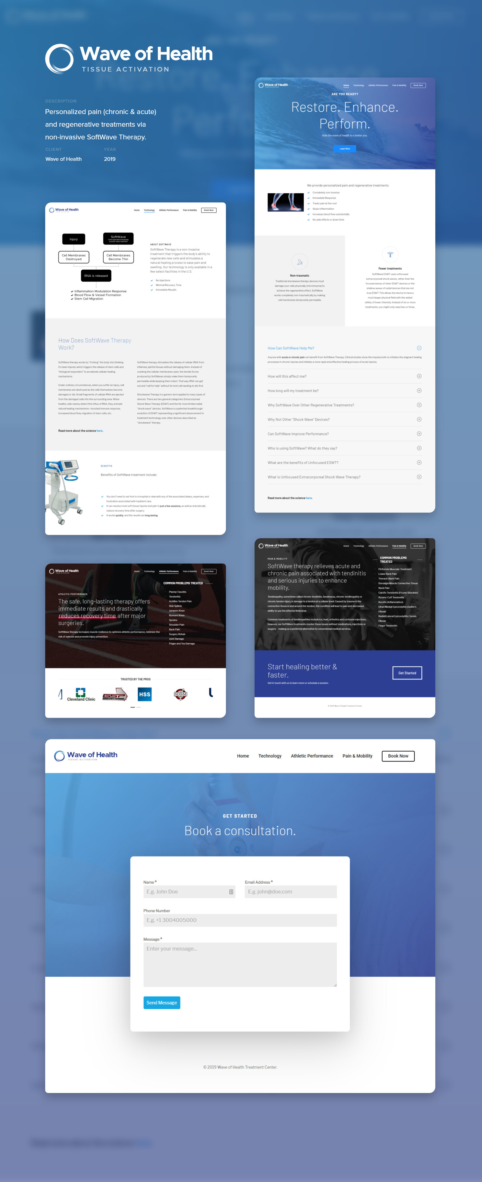 Brand identity & landing website for Wave of Health Tissue Activation: personalized pain & regenerative treatments.